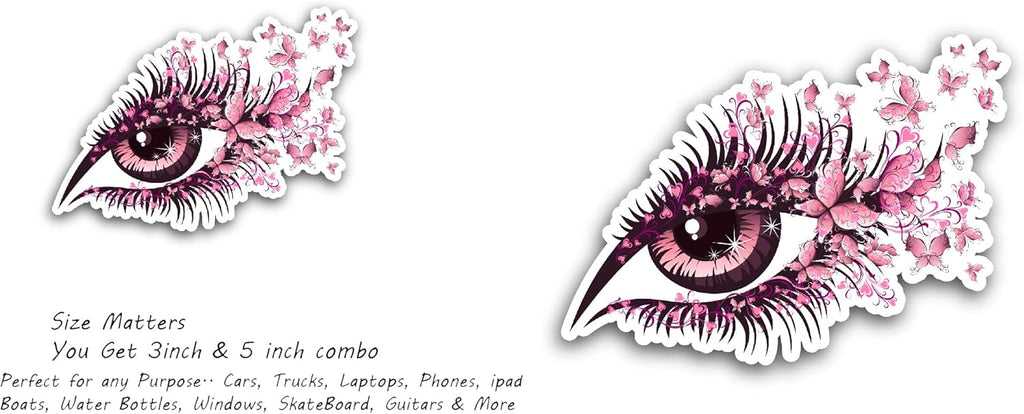 2 (Pieces) 3" and 5" Butterfly Eyelash Sticker, Waterproof Vinyl Decals for Many Purpose Like Cars, Trucks, Laptops, Phones, Windows and More