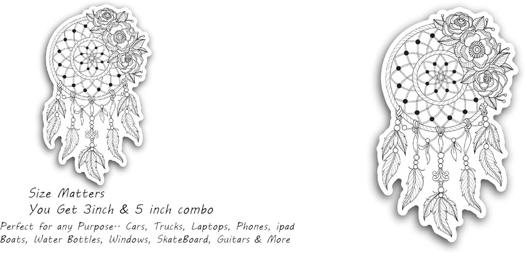2 (Pieces) 3" and 5" Dreamcatcher Design Sticker, Waterproof Vinyl Decals for Many Purpose Like Cars, Trucks, Laptops, Phones, Windows and More