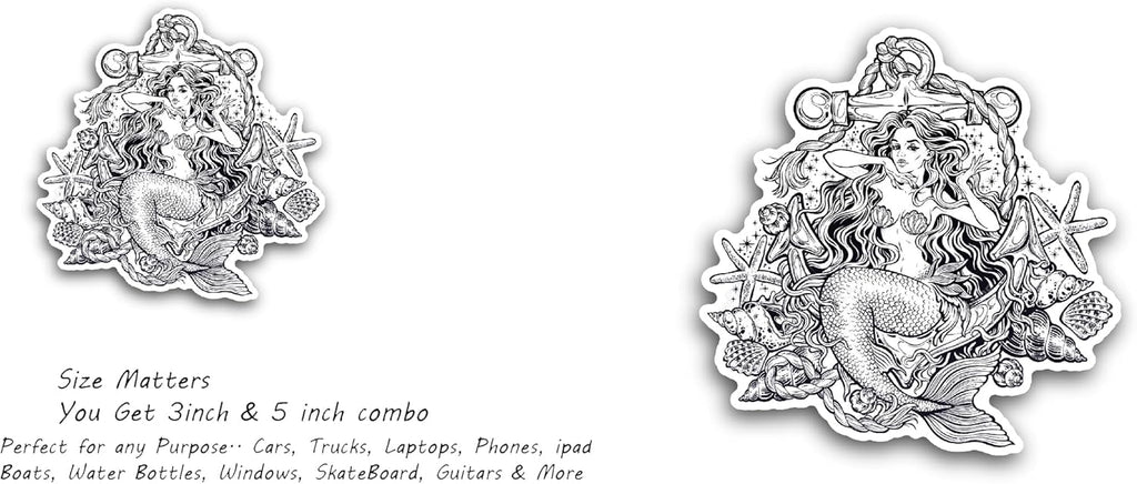 2 (Pieces) 3" and 5" Mermaid Girl with Fairy Tale Hair Sticker, Waterproof Vinyl Decals for Many Purpose Like Cars, Trucks, Laptops, Phones, Windows and More