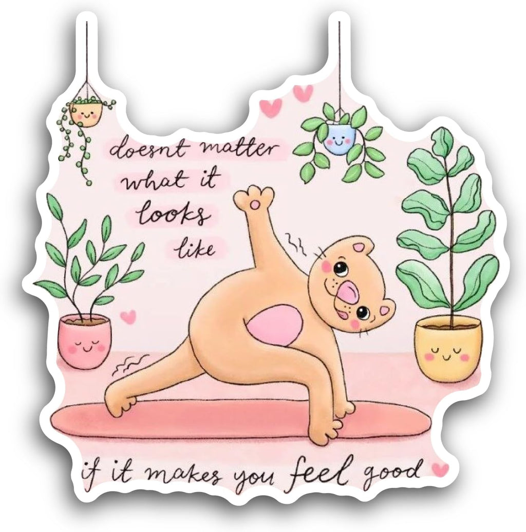 2 (Pieces) 3" and 5" Self Love Text with Cat Drawing Sticker, Waterproof Vinyl Decals for Many Purpose Like Cars, Trucks, Laptops, Phones, Windows and More