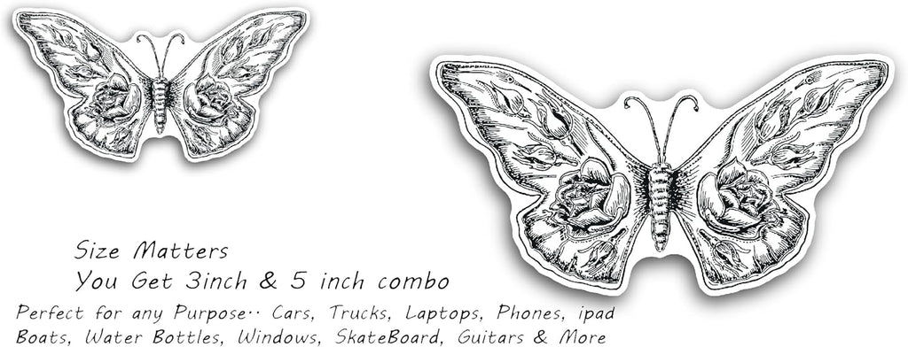 2 (Pieces) 3" and 5" Rose Flower Butterfly Sticker, Waterproof Vinyl Decals for Many Purpose Like Cars, Trucks, Laptops, Phones, Windows and More