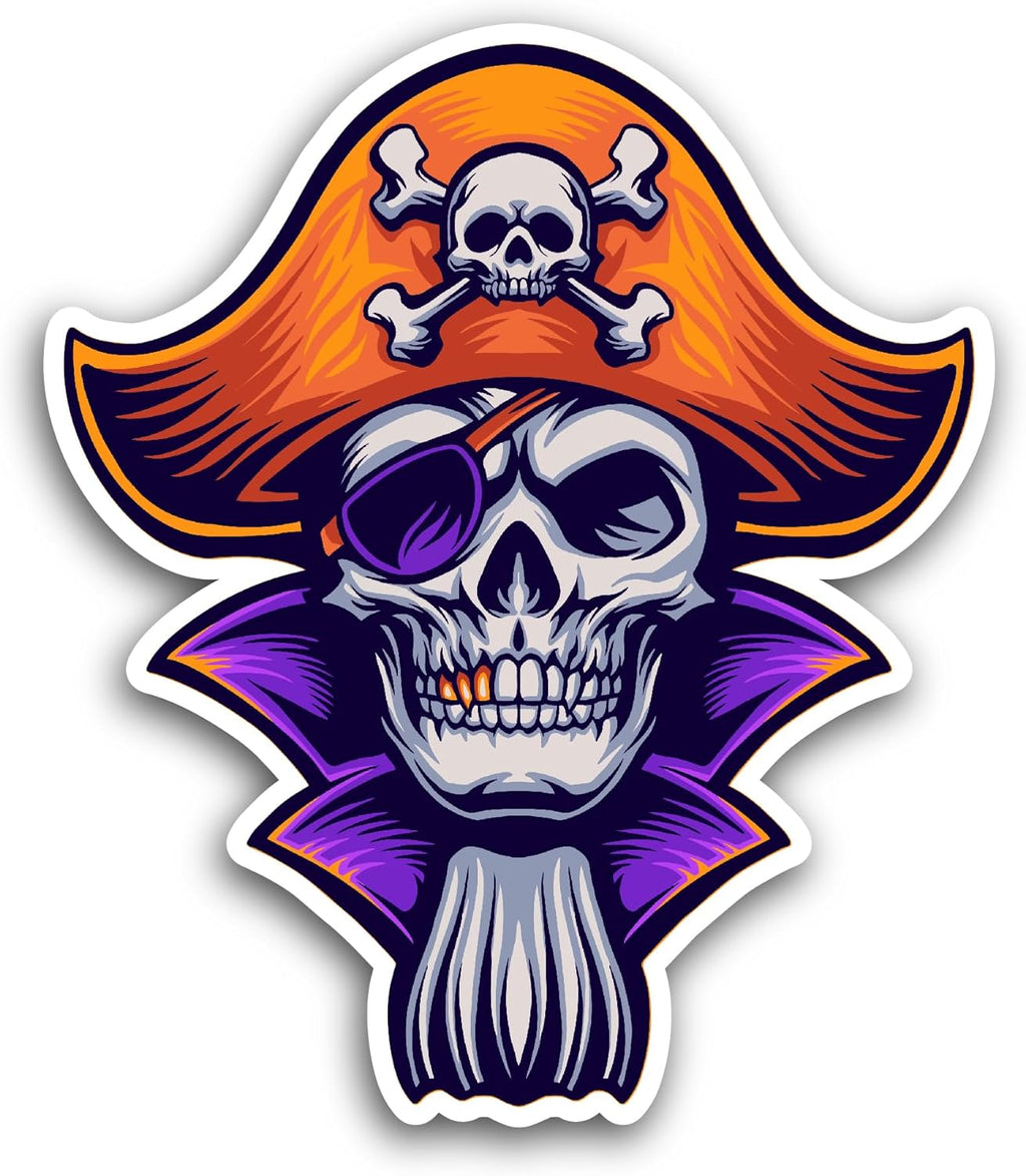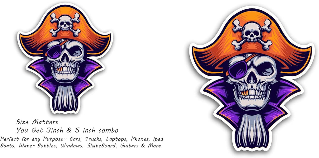 2 (Pieces) 3" and 5" Skull Pirate Sticker, Waterproof Vinyl Decals for Many Purposes Like Cars, Trucks, Laptops, Phones, Windows, and More
