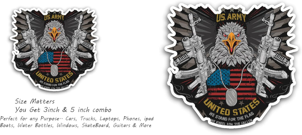 2 (Pieces) 3" and 5" Army Eagle Decal Sticker, Waterproof Vinyl Decals for Many Purpose Like Cars, Trucks, Laptops, Phones, Windows and More