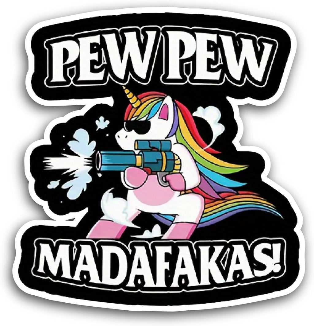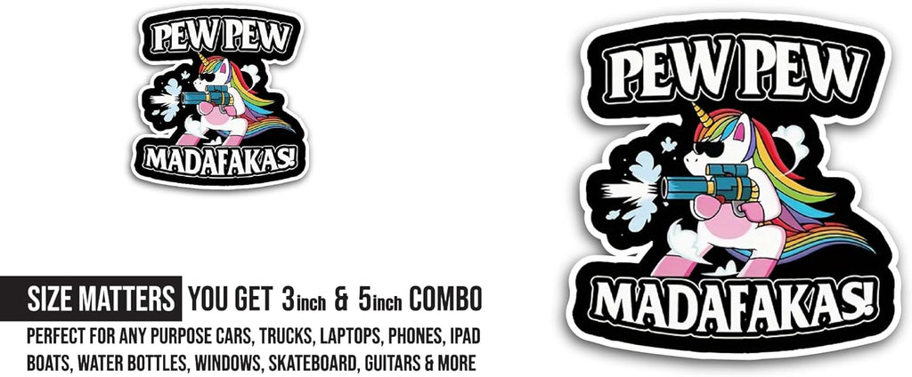 2 (Pieces) 3" and 5" Pew Pew Madafakas Text Sticker, Waterproof Vinyl Decals for Many Purpose Like Cars, Trucks, Laptops, Phones, Windows and More