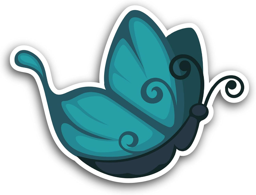 2 (Pieces) 3" and 5" Blue Butterfly Cartoon Sticker, Waterproof Vinyl Decals for Many Purpose Like Cars, Trucks, Laptops, Phones, Windows and More