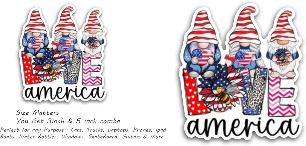2 (Pieces) 3" and 5" Love America Message Sticker Decal Sticker, Waterproof Vinyl Decals for Many Purpose Like Cars, Trucks, Laptops, Phones, Windows and More