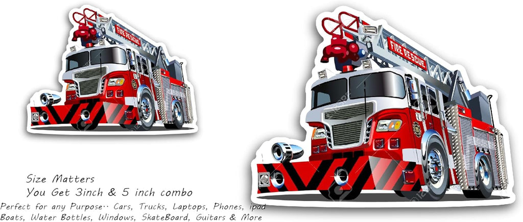 2 (Pieces) 3" and 5" Fire Truck Sticker, Waterproof Vinyl Decals for Many Purpose Like Cars, Trucks, Laptops, Phones, Windows and More