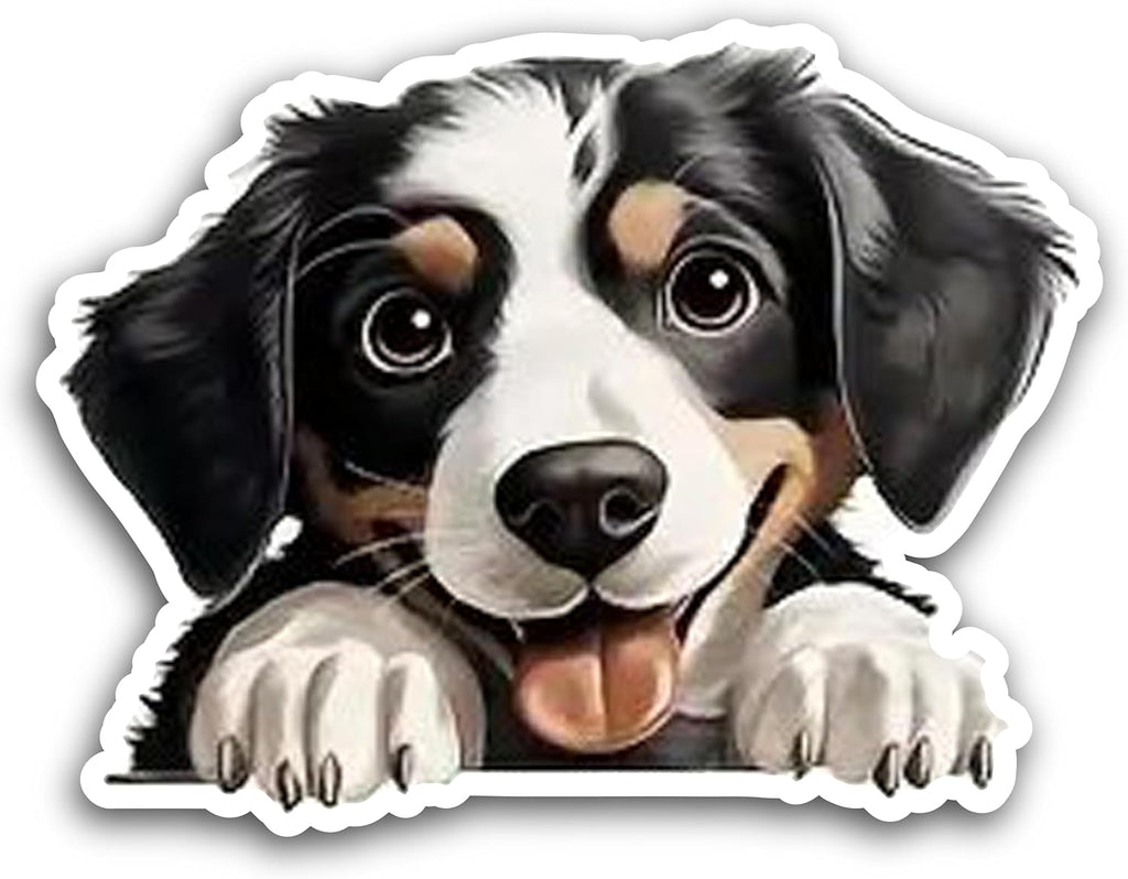 2 (Pieces) 3" and 5" Adorable Black and White Mixed Breed Dog Decal Sticker, Waterproof Vinyl Decals for Many Purpose Like Cars, Trucks, Laptops, Phones, Windows and More