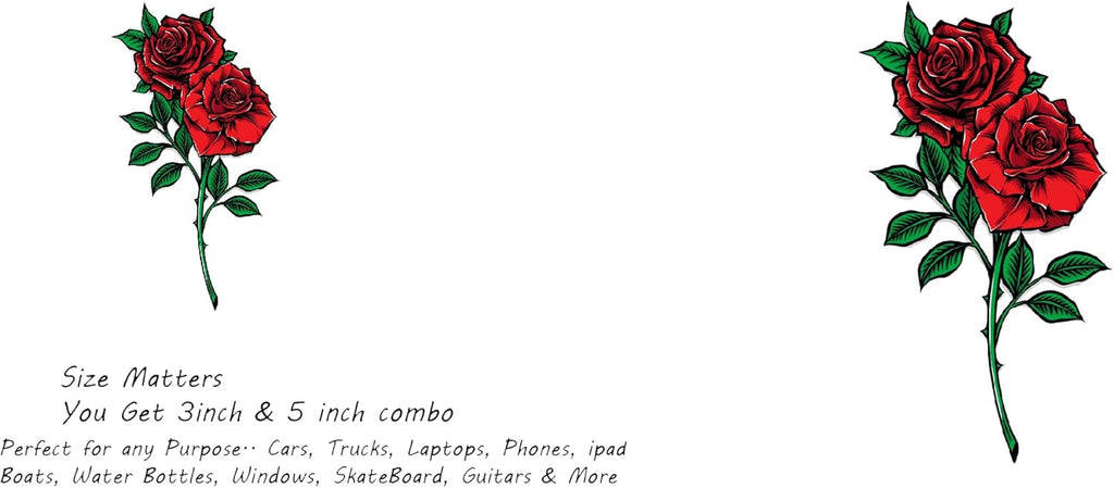 2 (Pieces) 3" and 5" Rose Flower Sticker, Waterproof Vinyl Decals for Many Purpose Like Cars, Trucks, Laptops, Phones, Windows and More