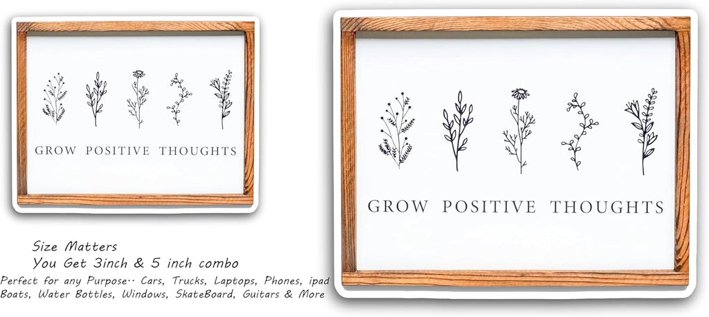 2 (Pieces) 3" and 5" Grow Positive Thoughts Decal Sticker, Waterproof Vinyl Decals for Many Purpose Like Cars, Trucks, Laptops, Phones, Windows and More