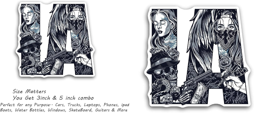 2 (Pieces) 3" and 5" Chicano Vintage Sticker, Waterproof Vinyl Decals for Many Purpose Like Cars, Trucks, Laptops, Phones, Windows and More