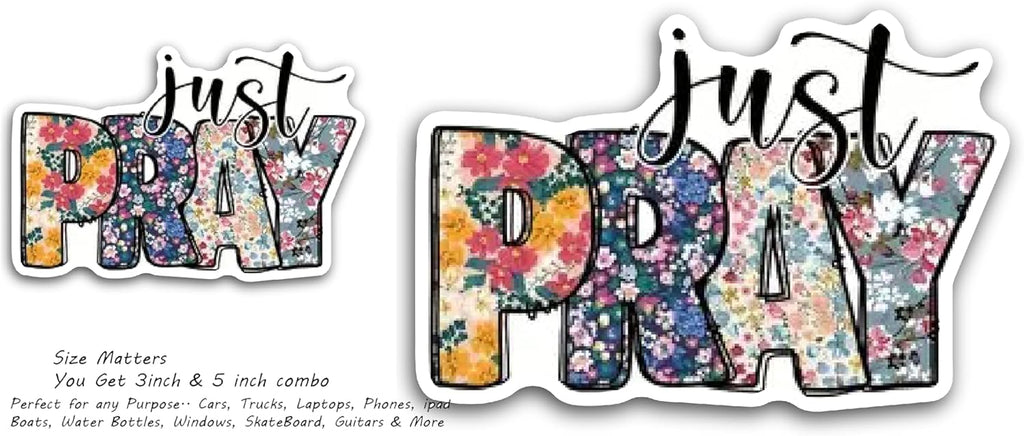 2 (Pieces) 3" and 5" Just Pray in Color Decal Sticker, Waterproof Vinyl Decals for Many Purpose Like Cars, Trucks, Laptops, Phones, Windows and More