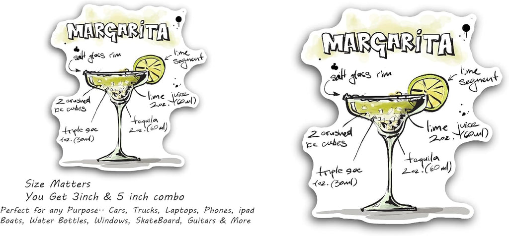 2 (Pieces) 3" and 5" Margarita Drink Sticker, Waterproof Vinyl Decals for Many Purpose Like Cars, Trucks, Laptops, Phones, Windows and More