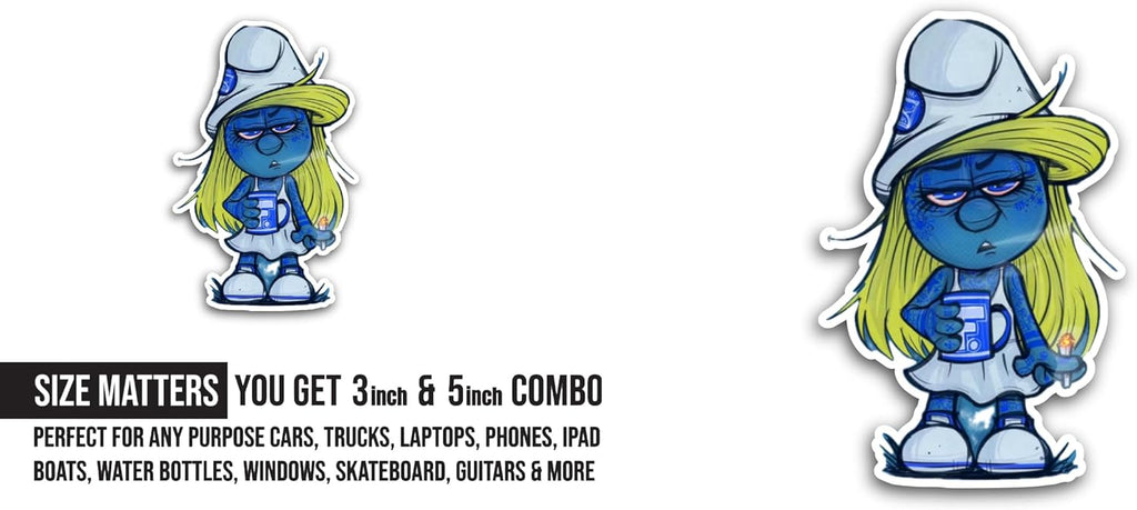 2 (Pieces) 3" and 5" Blue Smurf Sticker, Waterproof Vinyl Decals for Many Purpose Like Cars, Trucks, Laptops, Phones, Windows and More