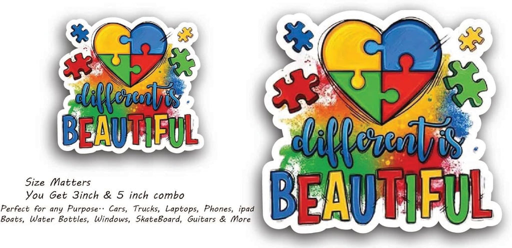 2 (Pieces) 3" and 5" Different is Beautiful Sticker, Waterproof Vinyl Decals for Many Purpose Like Cars, Trucks, Laptops, Phones, Windows and More