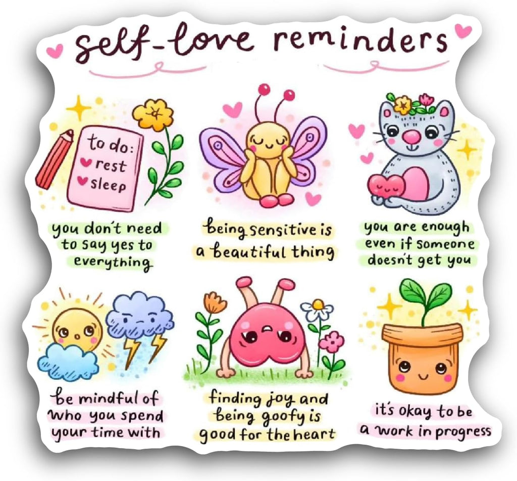 2 (Pieces) 3" and 5" Self Love Text Sticker, Waterproof Vinyl Decals for Many Purpose Like Cars, Trucks, Laptops, Phones, Windows and More