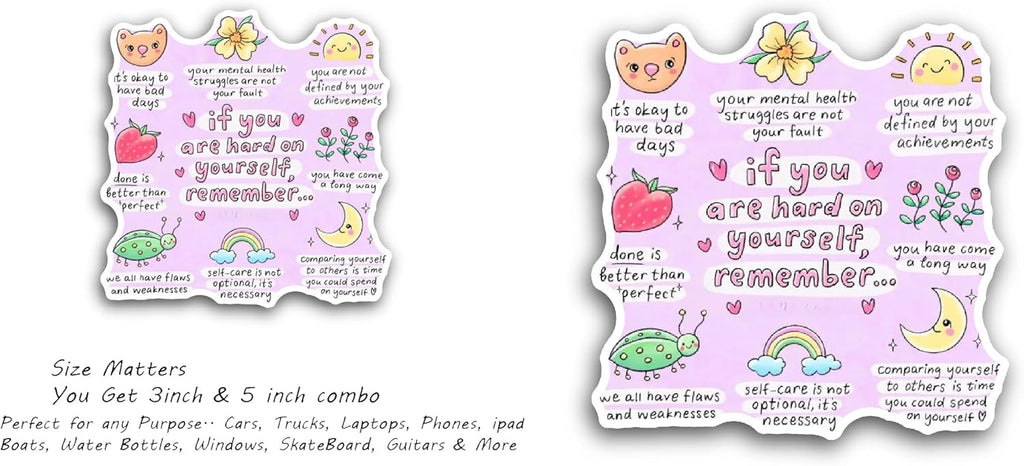 2 (Pieces) 3" and 5" Selfcare Texts with Hand Drawn Arts Sticker, Waterproof Vinyl Decals for Many Purpose Like Cars, Trucks, Laptops, Phones, Windows and More