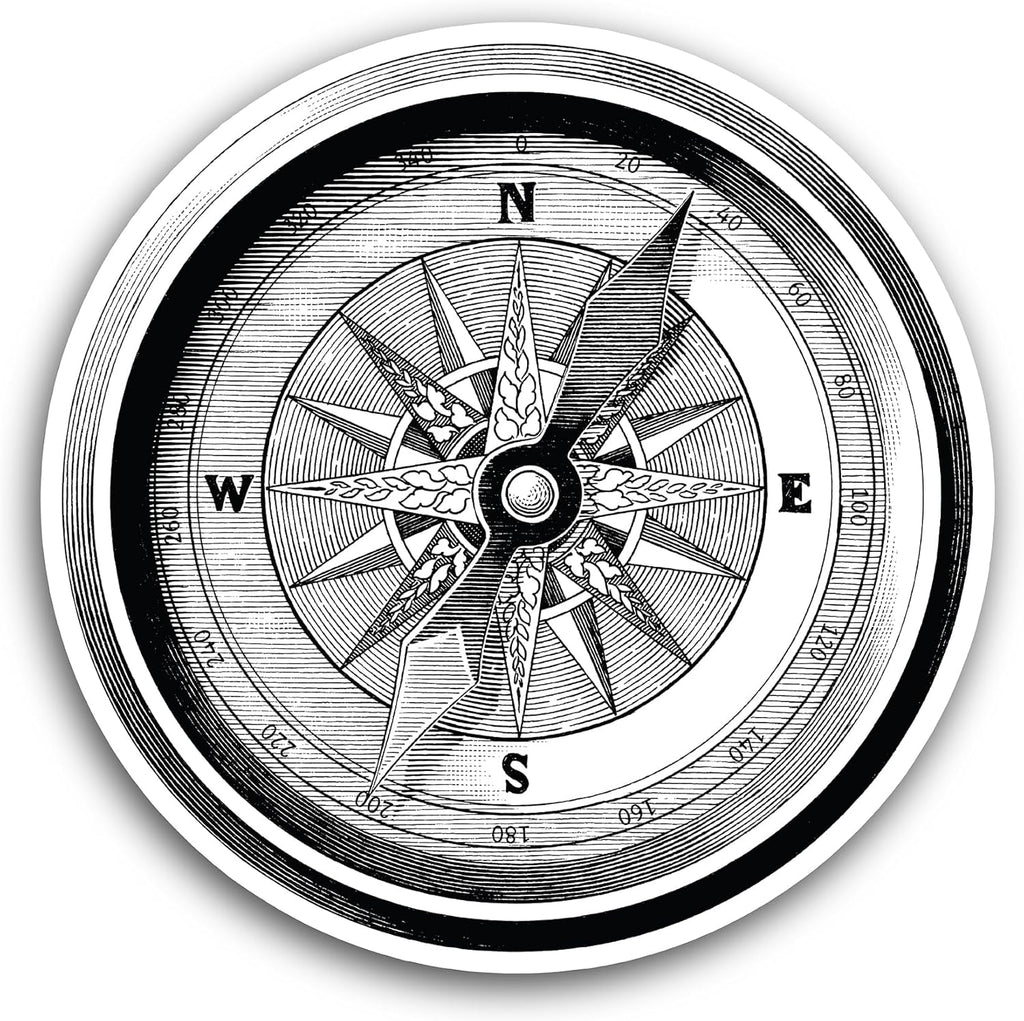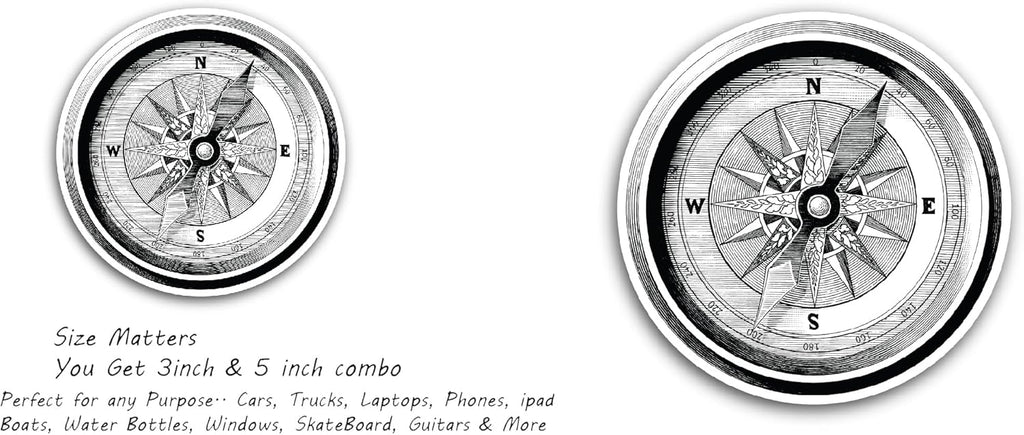 2 (Pieces) 3" and 5" Compass Decal Sticker, High Quality Waterproof Vinyl Decals for Many Purpose Like Cars, Trucks, Laptops, Phones, Windows and More