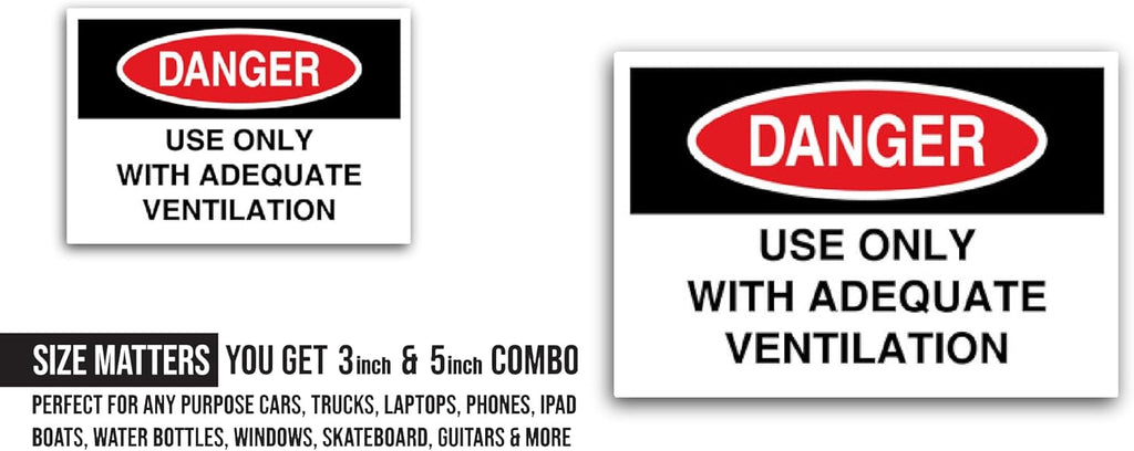 2 (Pieces) 3" and 5" Use Only with Adequate Ventilation Sticker, Waterproof Vinyl Decals for Many Purpose Like Cars, Trucks, Laptops, Phones, Windows and More