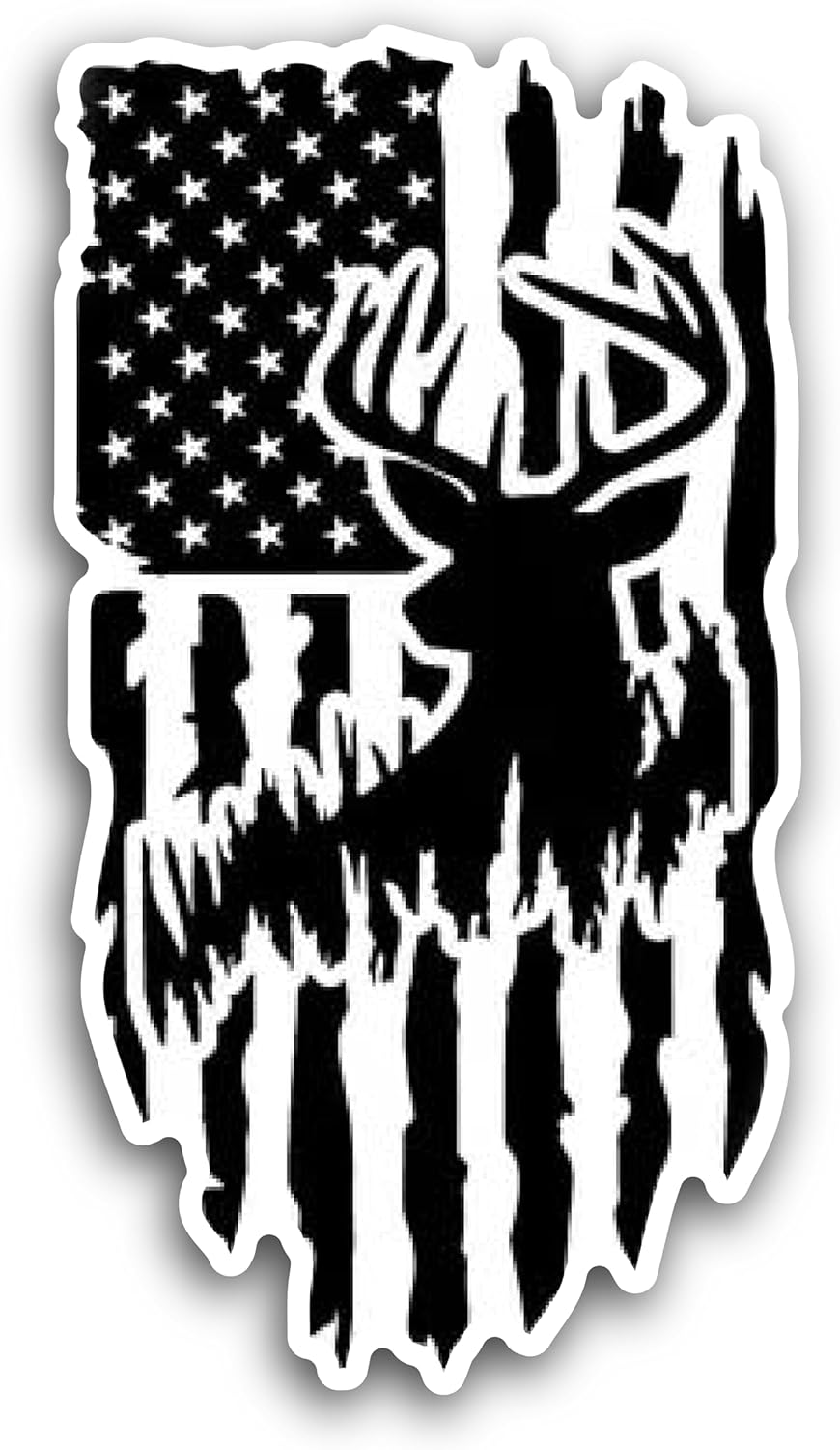 2 (Pieces) 3" and 5" Deer face Image with American Flag Background Decal Sticker, Waterproof Vinyl Decals for Many Purpose Like Cars, Trucks, Laptops, Phones, Windows and More
