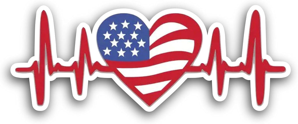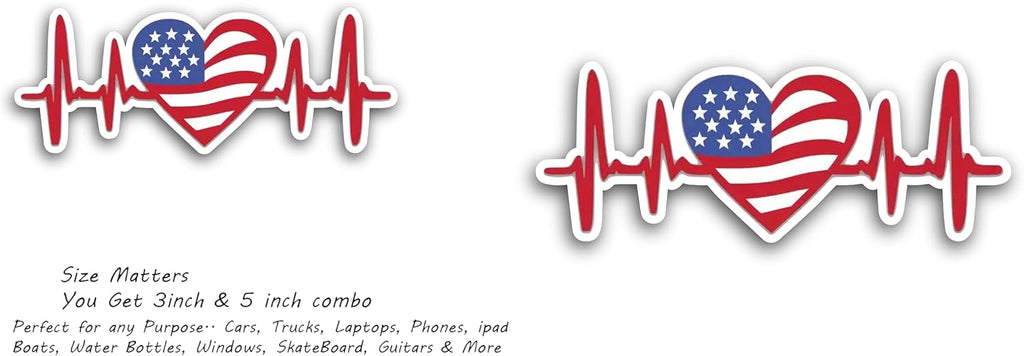 2 (Pieces) 3" and 5" Heart Rate Desing in American Flag Color Decal Sticker, Waterproof Vinyl Decals for Many Purpose Like Cars, Trucks, Laptops, Phones, Windows and More