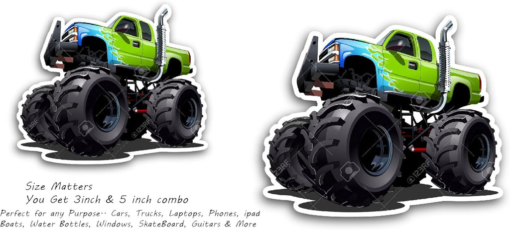 2 (Pieces) 3" and 5" Green Monster Truck Sticker, Waterproof Vinyl Decals for Many Purpose Like Cars, Trucks, Laptops, Phones, Windows and More