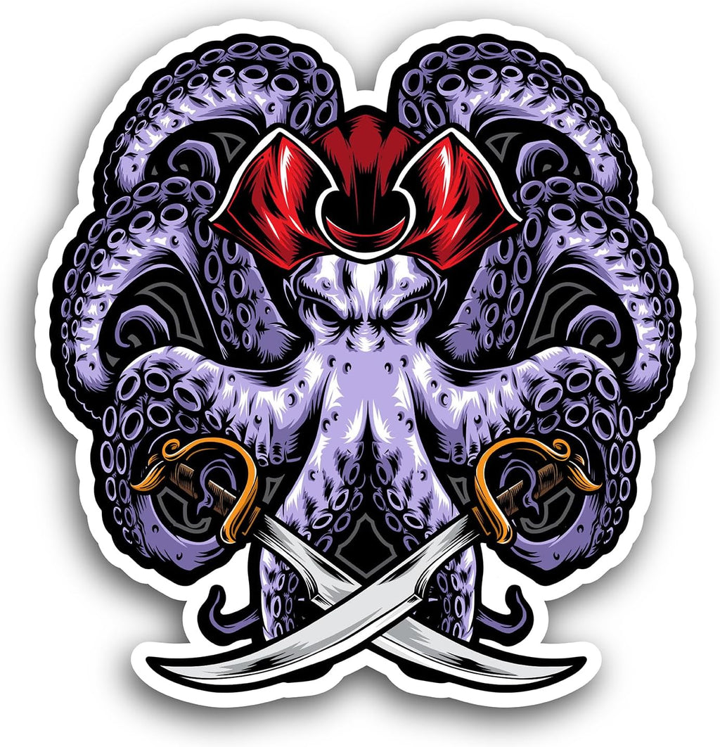 2 (Pieces) 3" and 5" Pirate Octopus Sticker, Waterproof Vinyl Decals for Many Purpose Like Cars, Trucks, Laptops, Phones, Windows and More