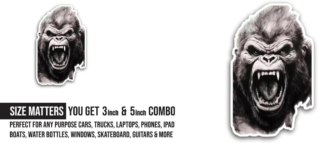2 (Pieces) 3" and 5" Gorilla Head Sticker, Waterproof Vinyl Decals for Many Purpose Like Cars, Trucks, Laptops, Phones, Windows and More (Copy)