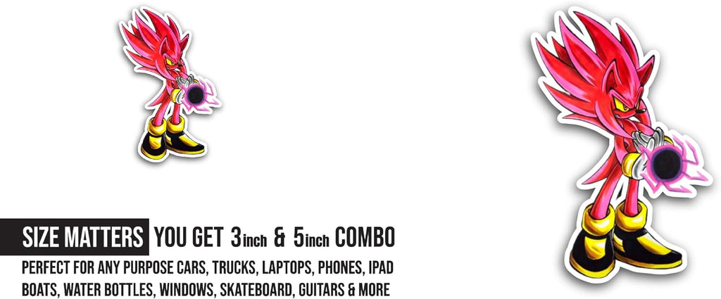 2 (Pieces) 3" and 5" Fire The Hedgehog Sticker, Waterproof Vinyl Decals for Many Purpose Like Cars, Trucks, Laptops, Phones, Windows and More