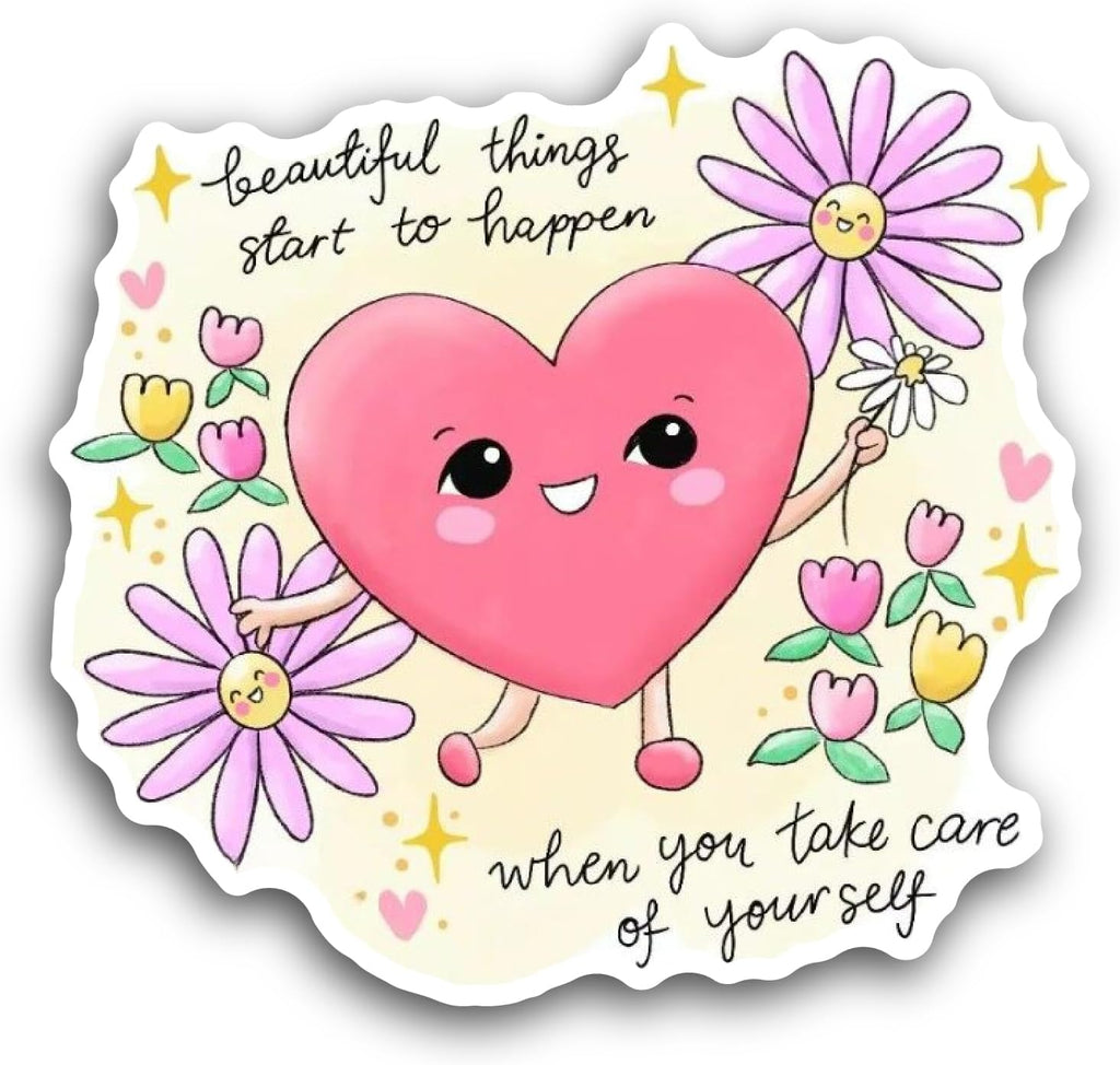 2 (Pieces) 3" and 5" Love Heart Flowers Around Sticker, Waterproof Vinyl Decals for Many Purpose Like Cars, Trucks, Laptops, Phones, Windows and More