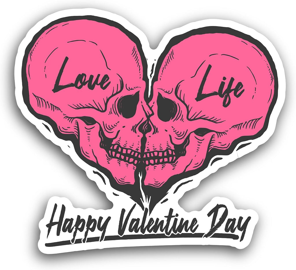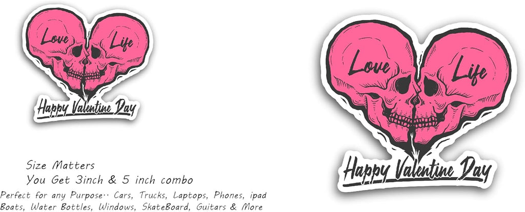 2 (Pieces) 3" and 5" Valentine's Day Skull Sticker, Waterproof Vinyl Decals for Many Purpose Like Cars, Trucks, Laptops, Phones, Windows and More