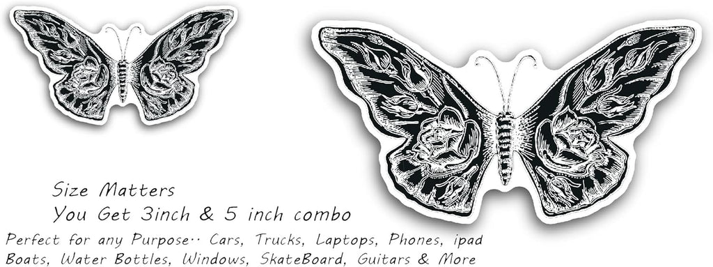 2 (Pieces) 3" and 5" Black Butterfly Decal Sticker, Waterproof Vinyl Decals for Many Purpose Like Cars, Trucks, Laptops, Phones, Windows and More
