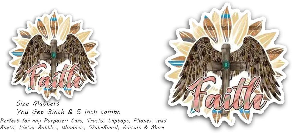 2 (Pieces) 3" and 5" Faith Message on Cross Decal Sticker, Waterproof Vinyl Decals for Many Purpose Like Cars, Trucks, Laptops, Phones, Windows and More
