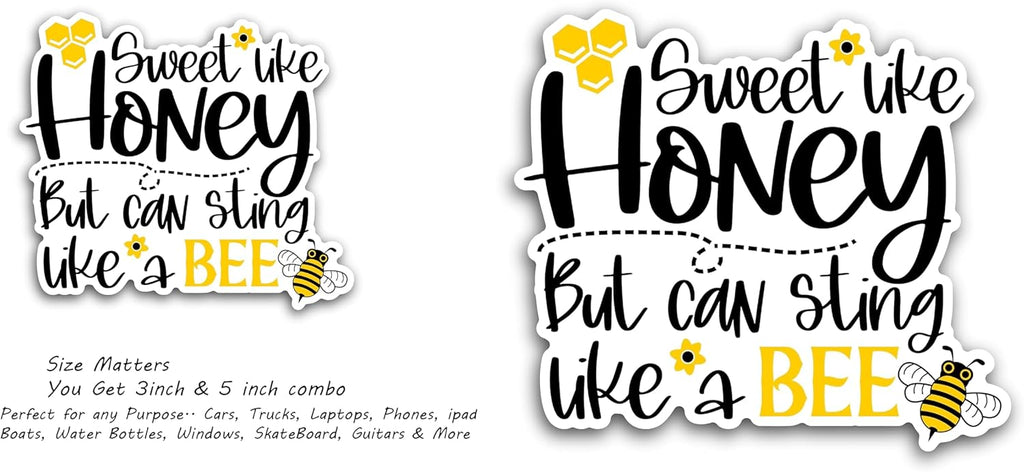 2 (Pieces) 3" and 5" Sweet Like Honey but can Sting Like a Bee Decal Sticker, Waterproof Vinyl Decals for Many Purpose Like Cars, Trucks, Laptops, Phones, Windows and More