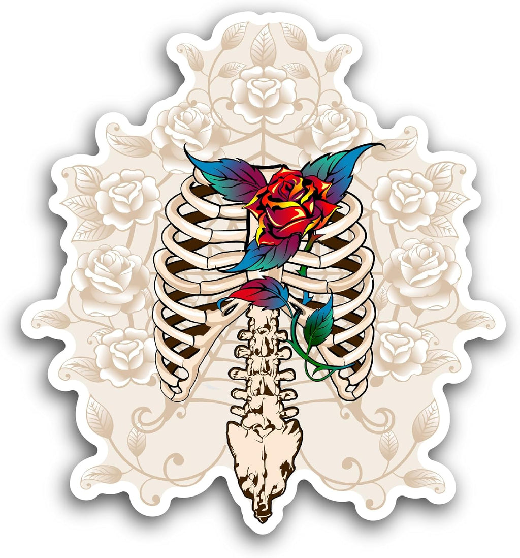 2 (Pieces) 3" and 5" Spine Bones and Roses Sticker, Waterproof Vinyl Decals for Many Purpose Like Cars, Trucks, Laptops, Phones, Windows and More