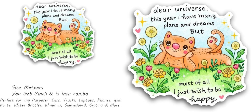 2 (Pieces) 3" and 5" Cat Drawing with Text Sticker, Waterproof Vinyl Decals for Many Purpose Like Cars, Trucks, Laptops, Phones, Windows and More