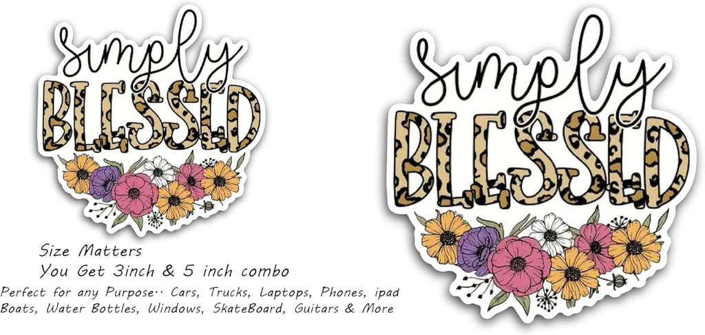 2 (Pieces) 3" and 5" Simply Blessed with Flowers Decal Sticker,Waterproof Vinyl Decals for Many Purpose Like Cars, Trucks, Laptops, Phones, Windows and More