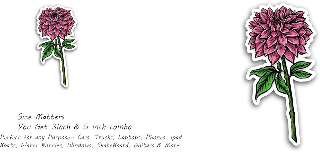2 (Pieces) 3" and 5" Pink Dahlia Sticker, Waterproof Vinyl Decals for Many Purpose Like Cars, Trucks, Laptops, Phones, Windows and More