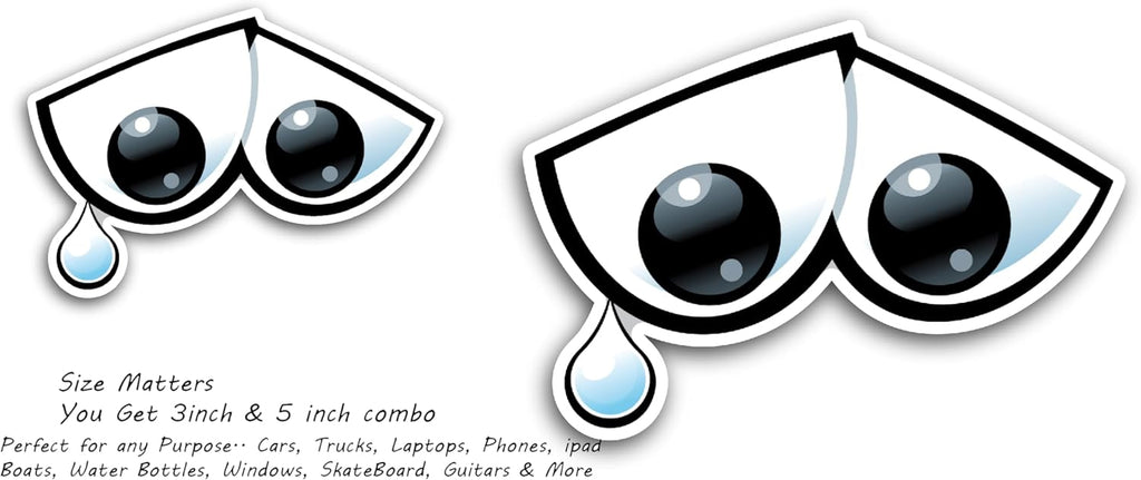 2 (Pieces) 3" and 5" Eyes with Drop of tears Decal Sticker, Waterproof Vinyl Decals for Many Purpose Like Cars, Trucks, Laptops, Phones, Windows and More
