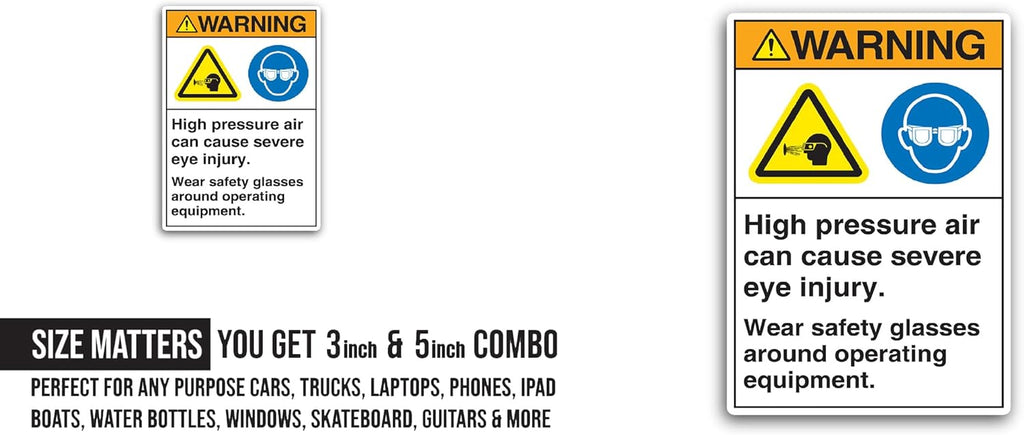 2 (Pieces) 3" and 5" Warning High Pressure Air Sticker, Waterproof Vinyl Decals for Many Purpose Like Cars, Trucks, Laptops, Phones, Windows and More