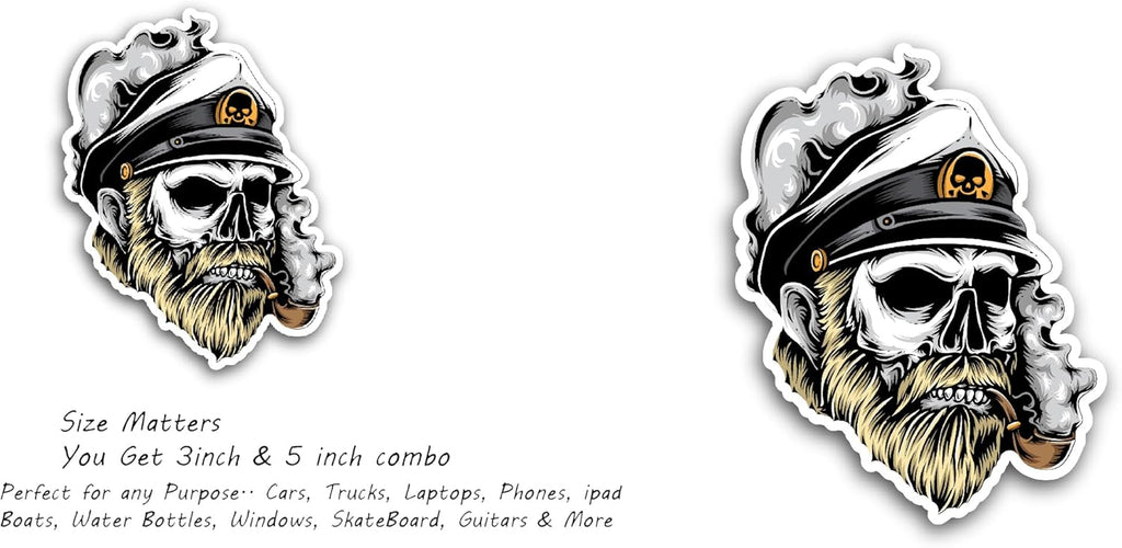 2 (Pieces) 3" and 5" Sailor Skull Sticker, Waterproof Vinyl Decals for Many Purpose Like Cars, Trucks, Laptops, Phones, Windows and More