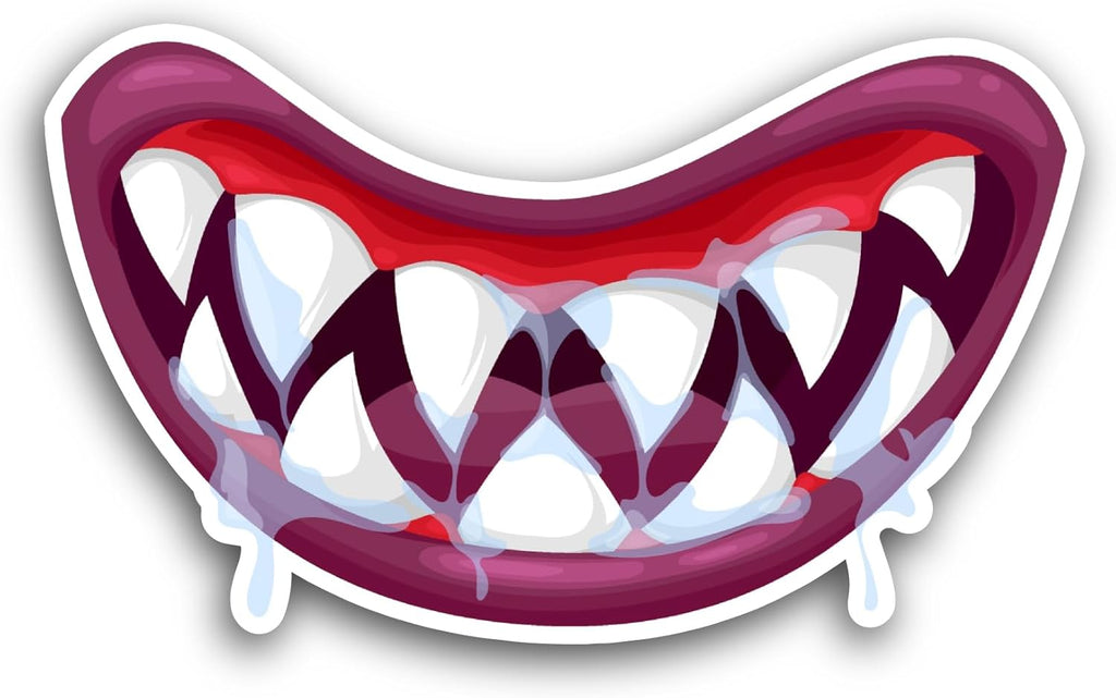 2 (Pieces) 3" and 5" Vampire Monster Smile Sticker, Waterproof Vinyl Decals for Many Purpose Like Cars, Trucks, Laptops, Phones, Windows and More