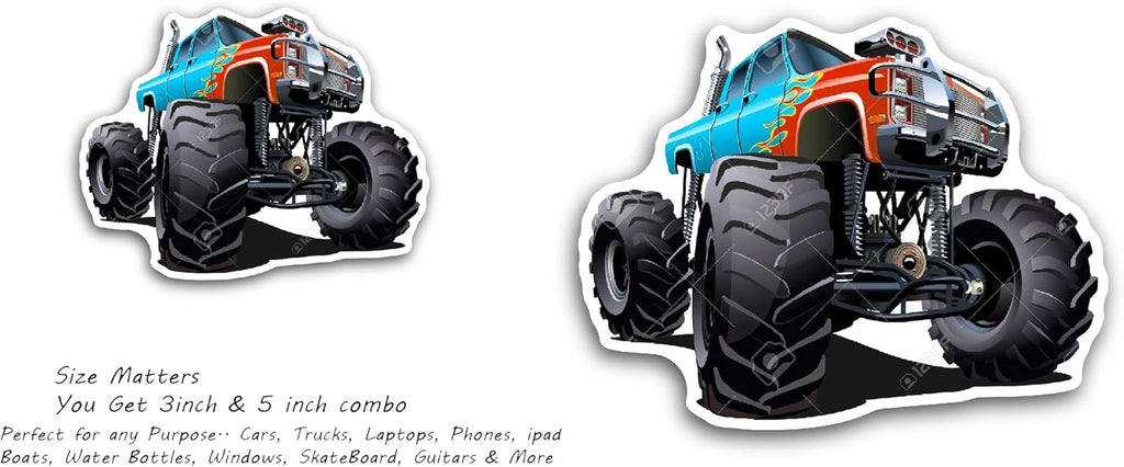 2 (Pieces) 3" and 5" Monster Truck Car Sticker, Waterproof Vinyl Decals for Many Purpose Like Cars, Trucks, Laptops, Phones, Windows and More
