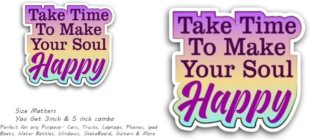 2 (Pieces) 3" and 5" Take Time to Make Your Soul Happy Sticker, Waterproof Vinyl Decals for Many Purpose Like Cars, Trucks, Laptops, Phones, Windows and More