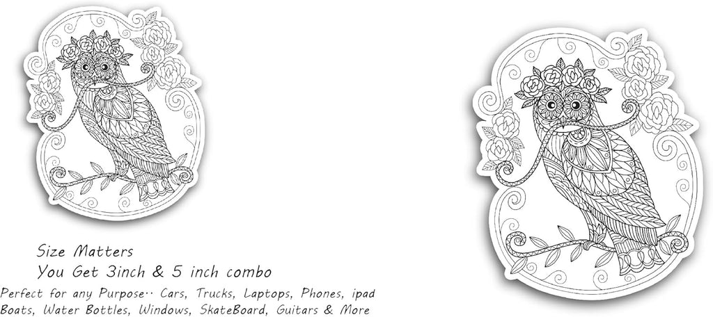 2 (Pieces) 3" and 5" Cute Owl Design Decal Sticker, Waterproof Vinyl Decals for Many Purpose Like Cars, Trucks, Laptops, Phones, Windows and More