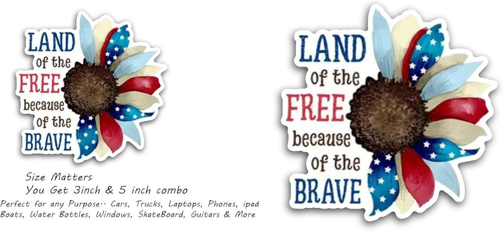 2 (Pieces) 3" and 5" Land of The Free Because of The Brave Message Sticker Decal Sticker, Waterproof Vinyl Decals for Many Purpose Like Cars, Trucks, Laptops, Phones, Windows and More