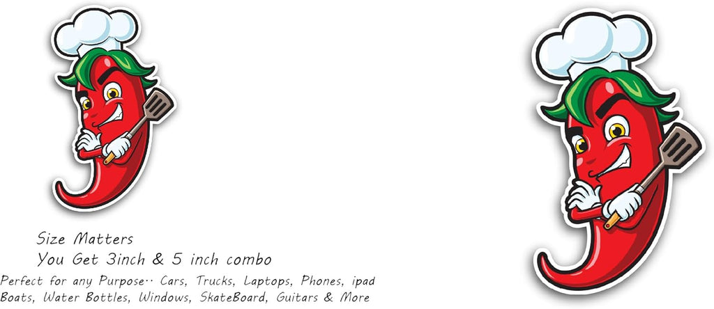 2 (Pieces) 3" and 5" Chili Chief Vector Sticker, Waterproof Vinyl Decals for Many Purpose Like Cars, Trucks, Laptops, Phones, Windows and More