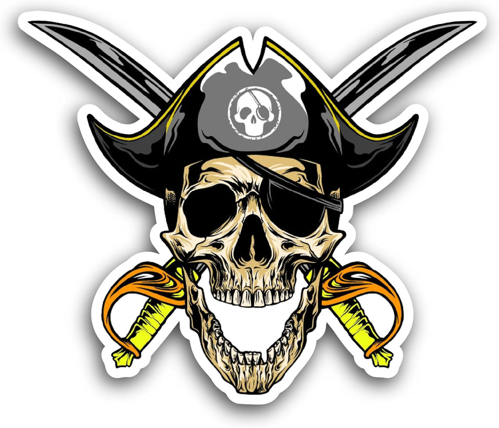 2 (Pieces) 3" and 5" Skull Pirates with Cross Swords Sticker, Waterproof Vinyl Decals for Many Purpose Like Cars, Trucks, Laptops, Phones, Windows and More