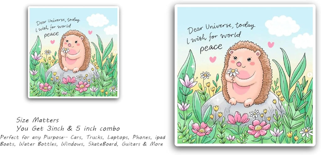 2 (Pieces) 3" and 5" Cute Cartoon Hedgehog Sticker, Waterproof Vinyl Decals for Many Purpose Like Cars, Trucks, Laptops, Phones, Windows and More