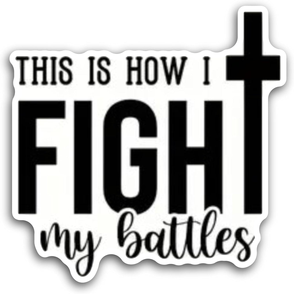 2 (Pieces) 3" and 5" This is How I Fight My Battles with Black Cross Decal Sticker, Waterproof Vinyl Decals for Many Purpose Like Cars, Trucks, Laptops, Phones, Windows and More